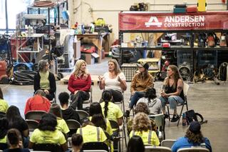 Coriann Presser (center) took part in a panel discussion at Camp BuildHER in the summer 2025, sharing about her career journey and the many pathways available in construction.